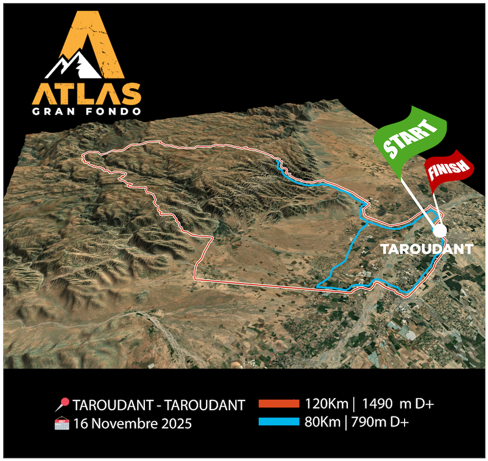 • Cyclisme-Dossard "1 jour" TAROUDANT / 16 Novembre 2025 : GRAN FONDO 80 KM - Individuel Groupe d'รขge/ouvert